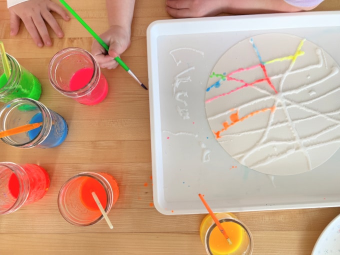 This is one of our top art activities for kids of all ages. If you haven’t tried raised salt painting yet, now’s your chance!